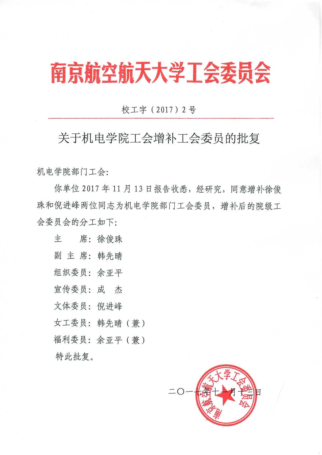 关于AV片 工会增补工会委员的批复