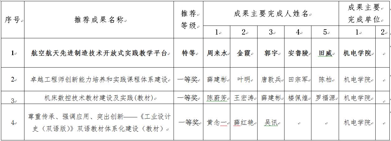 2017年校优秀教学成果奖申报名单公示