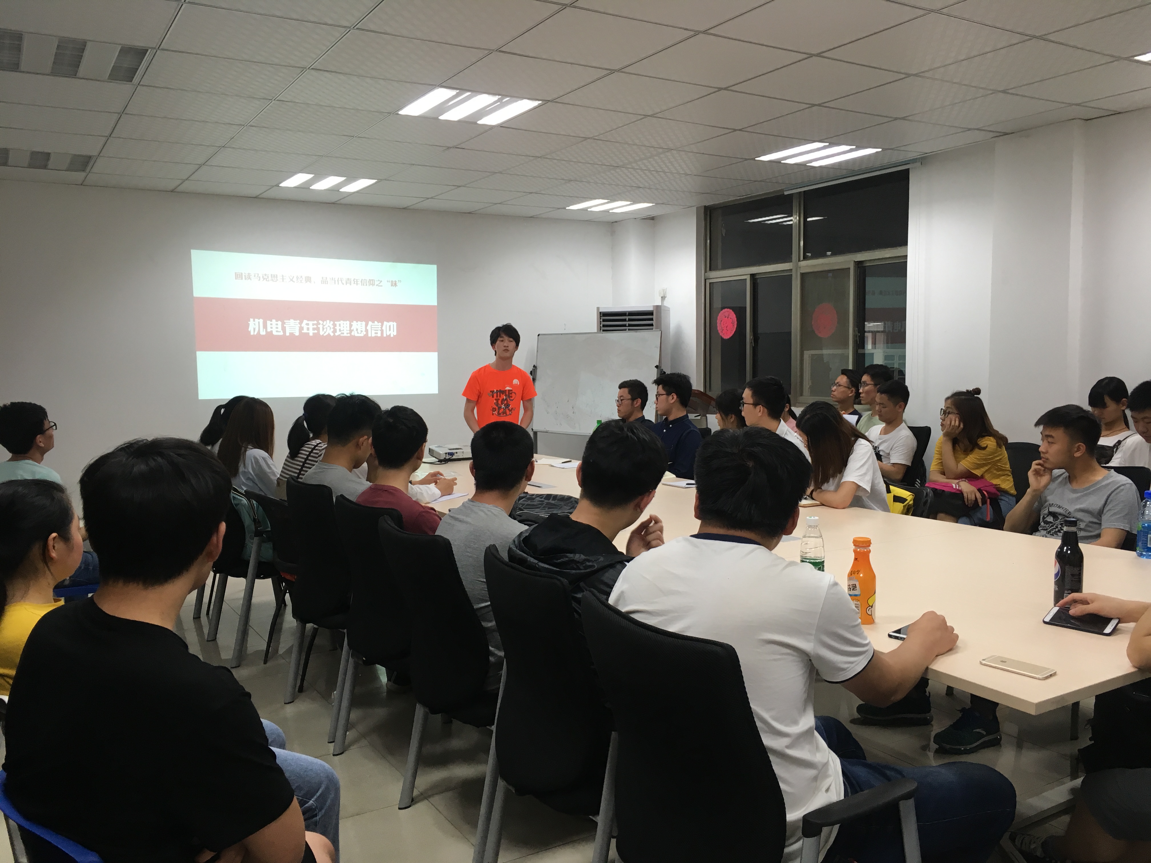 线下主题教育活动依托“机电青年信仰课堂”系列主题教育活动,以“回读马克思主义经典,品当代青年信仰之味”为主题,面向2016级、2017级团学干部进行理论学习和分享交流。本次主题分享交流会于2018年5月4日晚八点半在将军路校区学工楼210会议室举行,AV片 2016级辅导员康怡宁、2017级辅导员刘洪达以及两个年级的学生团干部参与了本次活动。