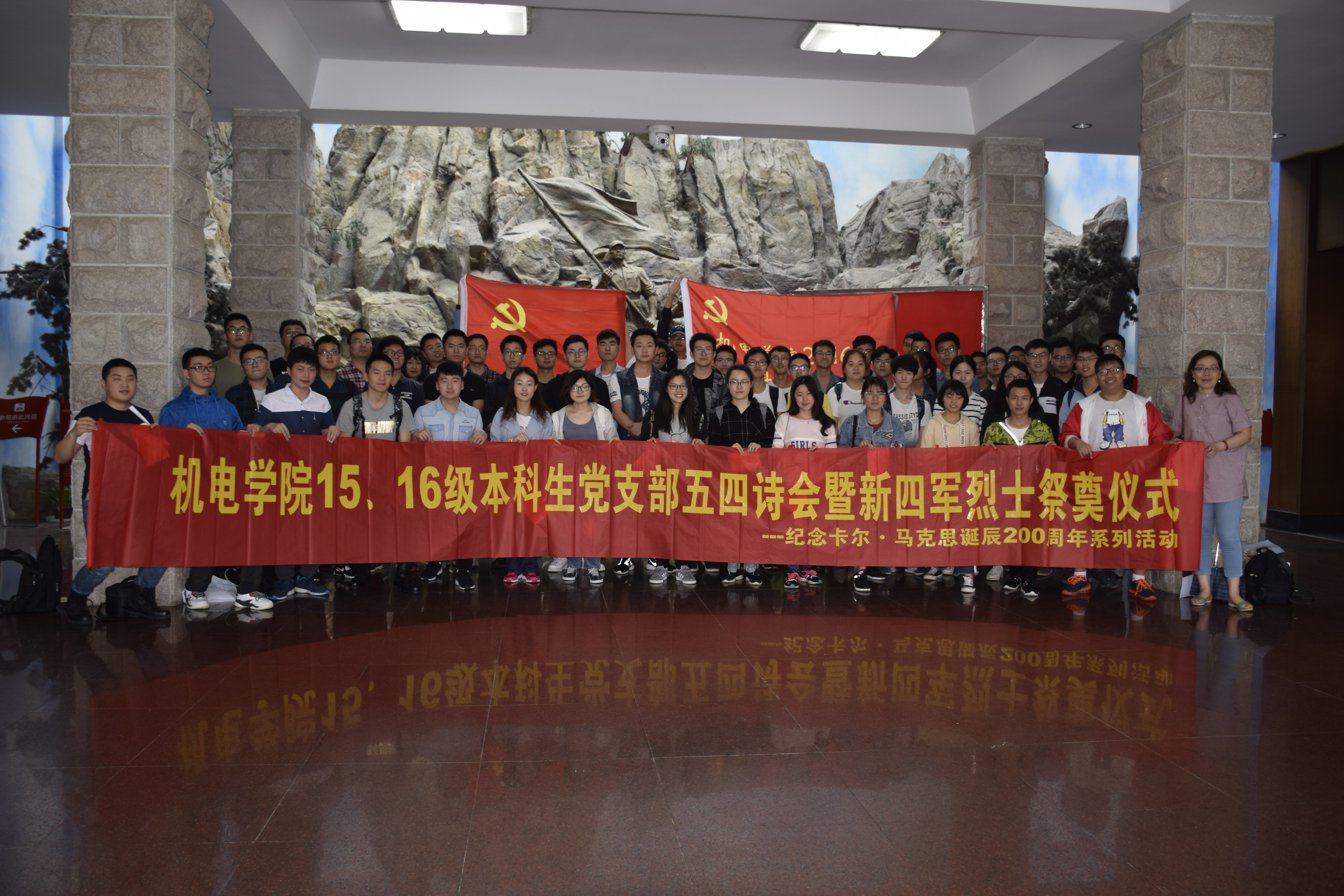 开展茅山新四军纪念馆党日主题教育活动――15、16级本科生党支部五四诗会暨新四军烈士祭奠仪式。2015级本科生党支部的19名预备党员,8名正式党员,2016级本科生党支部部分党员、积极分子代表和AV片