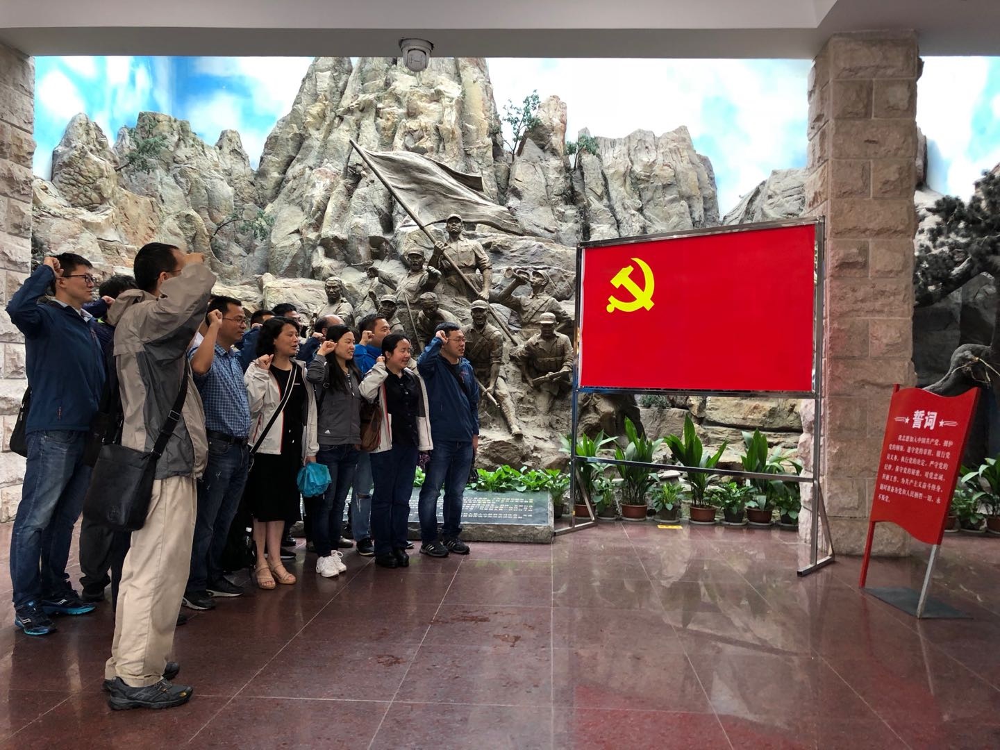 右手,握紧拳头,庄严宣誓。通过组织党员重温入党誓词活动,让党员们重温了入党宣誓时的庄严承诺和坚定决心,在党旗下接受心灵的净化和洗礼,牢记共产党员的政治责任和历史使命,不断保持共产党员的先进性,以更加饱满的热情投身到学习工作中,切实发挥共产党员的先锋模范作用,永葆共产党员的政治本色。参观结束后大家进行了自由讨论,纷纷表示,作为南航的师生党员,我们在和平年代,也要继续传承革命先烈们的奋战精神,充分发挥先锋模范带头作用,精益求精,为学校的双一流建设贡献自己的力量。