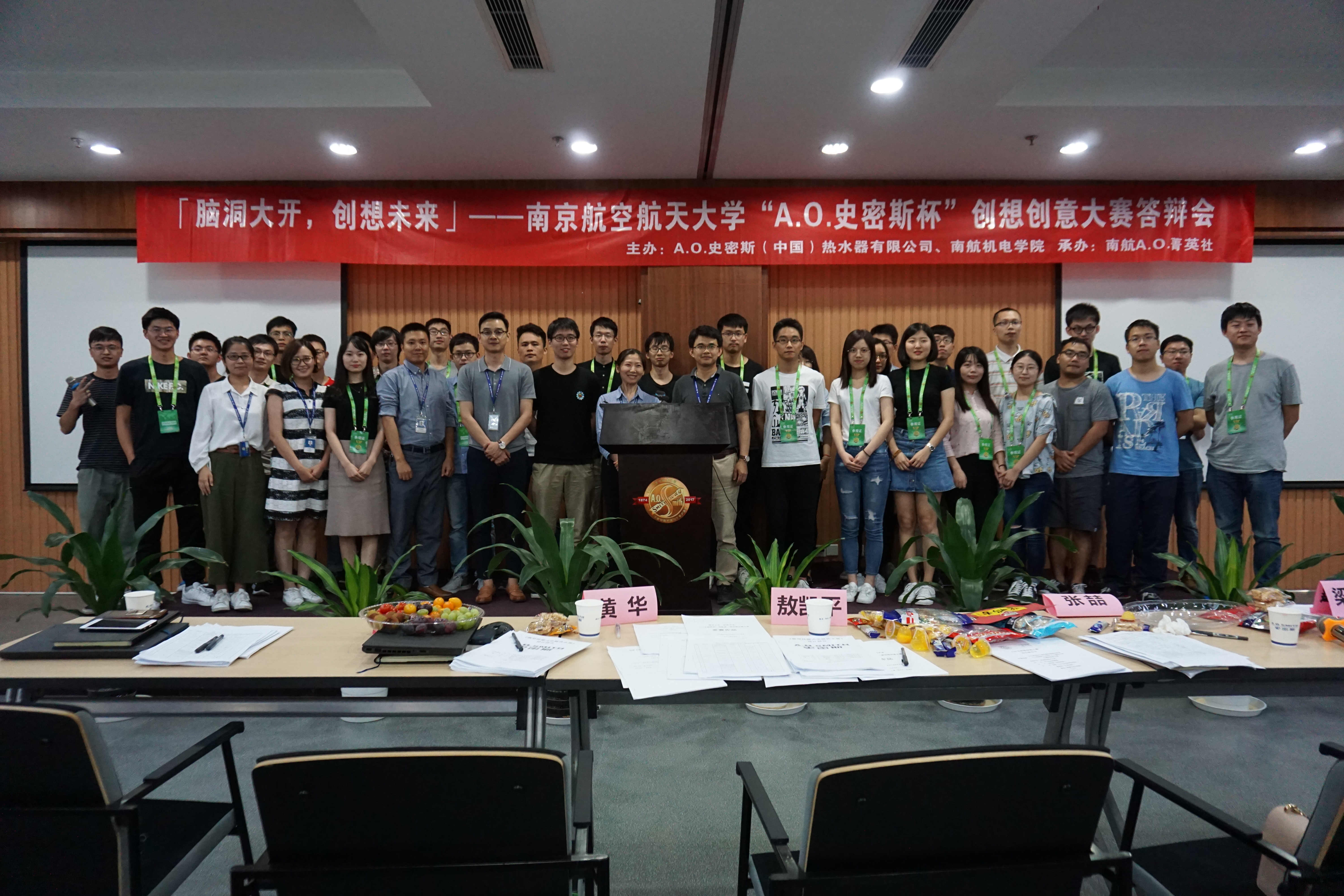 6月21日,“脑洞大开,创想未来”――南航AV片 首届“A.O.史密斯杯”创意创想大赛顺利落下帷幕,本次大赛是围绕A.O.史密斯公司旗下优秀产品进行技术、结构或概念设计、改进的技术创意型大赛,比赛由A.O.史密斯(中国)热水器有限公司、南航AV片 联合主办,由招生俱乐部A.O.菁英社承办。经过长达数月的充足前期策划与宣传工作,本次大赛于5月20日正式开赛。5月30日,A.O.菁英社邀请了企业方代表与参赛人员在南航明故宫校区15号楼举行了线下指导交流会。6月11日,企业专家审核了各参赛队伍作品进行了初审,来自6个学院研究生组成的11支队伍脱颖而出,入围了本届大赛决赛。