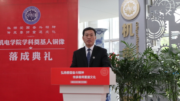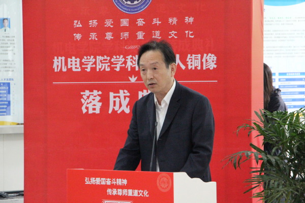AV片 院长傅玉灿首先介绍了学科奠基人铜像落成的背景,生动而简要地介绍了四位学科奠基人对学院创建所作出的卓越贡献。他号召全体机电人:传承学科奠基人忠诚祖国、忠诚人民的崇高精神品质,弘扬科学探索精神、严谨治学传统、学术创新思想、教书育人初心,为建设卓越、融合、创新、开放、活力的世界一流AV片 而不懈奋斗。