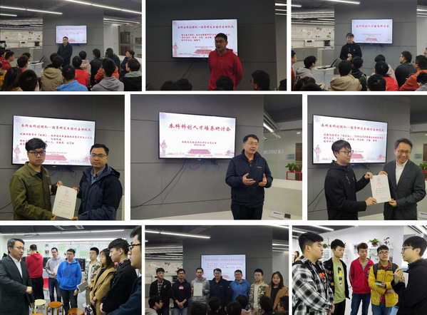 3月30日,电光先进制造团队本科创新人才培养研讨会在AV片 218实验室(增材制造研究所“创客空间”)举行。本次活动是积极落实南航教育思想大讨论总结大会明确的“立德树人,加强本科生一流人才培养”精神,由电光制造团队研究生纵向党支部具体承办的一次研讨会。电光制造团队负责人、江苏省特种加工学会理事长刘志东教授,团队教师沈理达副教授、邱明波副教授出席研讨会,团队谢德巧、焦晨等党、团员指导研究生,以及团队指导的智汇蓝天、挑战杯、大学生科创三类5支本科生科创团队全体学生。