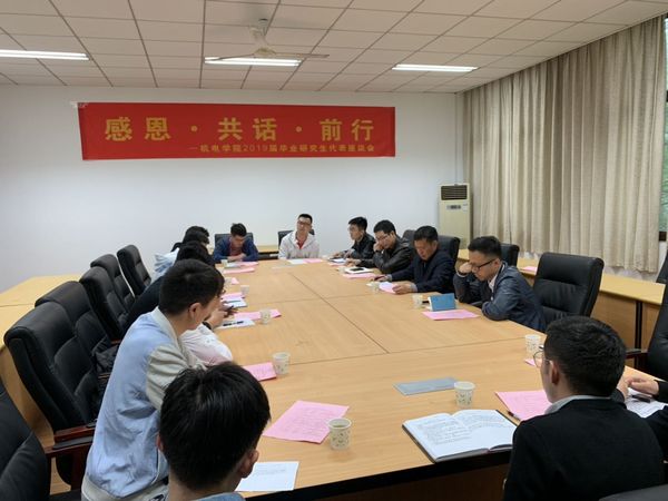4月9日,AV片 在明故宫校区6号楼310会议室举行了“感恩·共话·前行”2019届毕业研究生代表座谈会。AV片 党委书记袁智强、副院长徐正扬、党委副书记徐俊珠,研究生辅导员王洋、张恒以及来自各专业的优秀毕业生代表参加了座谈。会议由研究生辅导员王洋主持。