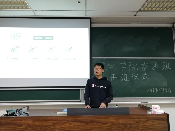为进一步加强学院学风建设,帮助学院低年级学困生群体的改善学习氛围、增强学习信心、提升专业成绩,2019年5月9日晚,AV片 奋进班开班仪式在江宁校区10305教室举行。本次仪式由学院学支中心负责老师刘洪达主持,大一年级辅导员孙志海参与。
