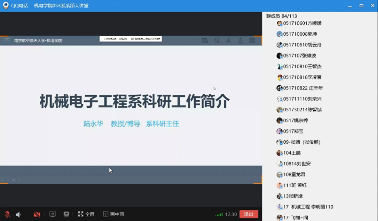 为进一步扩大学科影响,提升学院研究生生源质量,营造浓厚的深造氛围,4月20日到5月12日,AV片 2017级成功开展了4次线上系部大讲堂活动。本次大讲堂活动邀请到了设计工程系副主任郭勤涛、机械制造及其自动化系副主任丁文锋、机械电子工程系副主任陆永华和航空宇航制造工程系副主任鲍益东作为主讲人,采用线上会议的方式为AV片 学生介绍科研团队、研究方向等内容。本次系列活动由2017级本科生辅导员刘洪达主持。