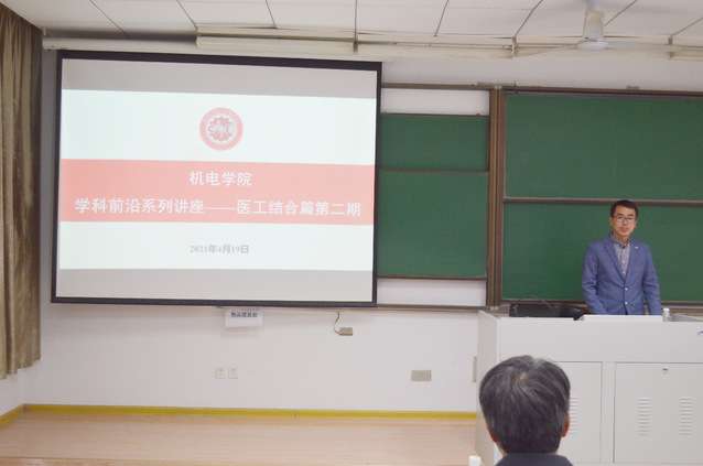 在介绍3D打印医工结合的过程中,沈理达向同学们分享了近年来3D打印技术在医疗领域的广泛应用,运用CT、PET等技术和数字化医疗技术能够准确获取生物体三维立体数据信息,在3D打印技术帮助下能够快速构建三维立体医疗模型,同时结合课题组的在研项目,为同学们展示了团队3D打印云计算平台、3D打印外骨骼与器官等方面的研究成果。