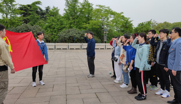 随后,支部成员来到雨花台革命烈士纪念碑前,举行重温入党誓词仪式。面向党旗,支部成员们郑重举起右拳,在张金政同志的带领下庄严宣誓。在这种特殊的环境下,支部成员们更深刻地感受到入党誓词的意义与重量,重温入党誓词让支部成员们更加坚定了今后全心全意地为人民服务的信念以及为中国特色社会主义伟大事业奋斗终身的理想。