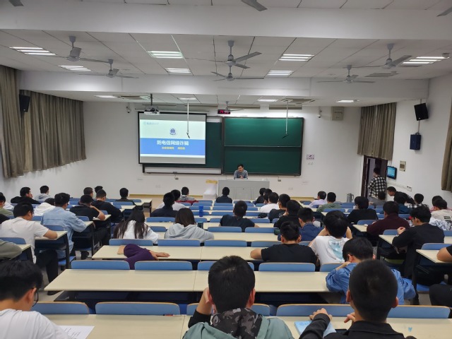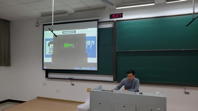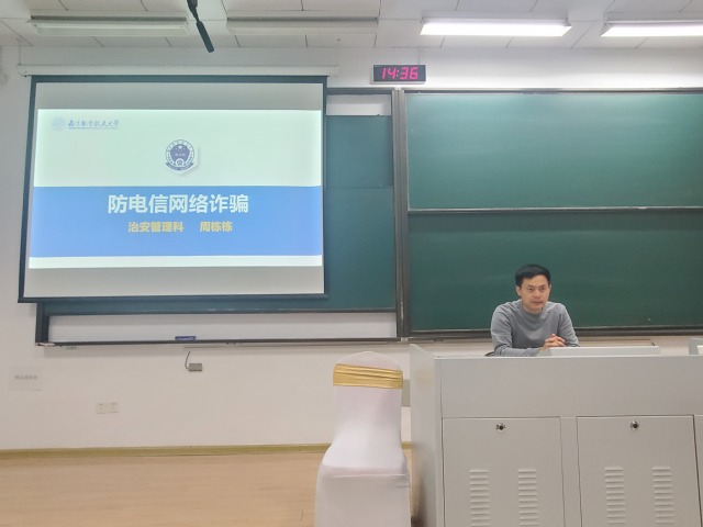 近期校园电信诈骗案件屡发不止,其诈骗手法和诱骗方式也层出不穷,日新月异,往往在不经意间就能见缝插针,使人放松警惕,令人防不胜防。在电信诈骗无孔不入之时,为有效遏制校园电信诈骗案件发案态势,增强学院师生辨别、抵制各类电信诈骗的能力,5月19日下午,AV片 特此开展防诈骗专题安全教育培训,邀请校保卫处治安管理科科长周栋栋面向师生做防范电信网络诈骗专题讲座,学院副院长成杰等师生代表参加了此次讲座。
