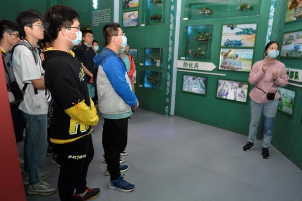 支部成员首先参观了军兵种馆。展馆展出了包括歼20、歼31、武直十、东风31、驱逐舰、护卫舰、战略核潜艇等等各类精品军事武器模型近200件,讲解员按照军种和兵种为大家介绍了目前中国人民解放军陆、海、空、火箭军的武器装备。军兵种的不断改革创新充分彰显了中国共产党对武装军事力量的重视,更展示了我国在军事建设领域取得的突出成果,极大的增强了同学们对于党和国家的自信心。