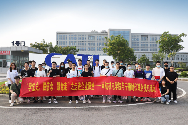 为贯彻落实习近平总书记在党史学习教育动员大会上的讲话精神,将学史明理、学史增信、学史崇德、学史力行的要求落实到行动上,AV片 研究生和本科生党员代表在辅导员徐广超、余珂欣带领下,前往江苏时代新能源科技有限公司(下文简称:江苏时代)开展“校企携手共建,传承红色基因”联合党日活动。