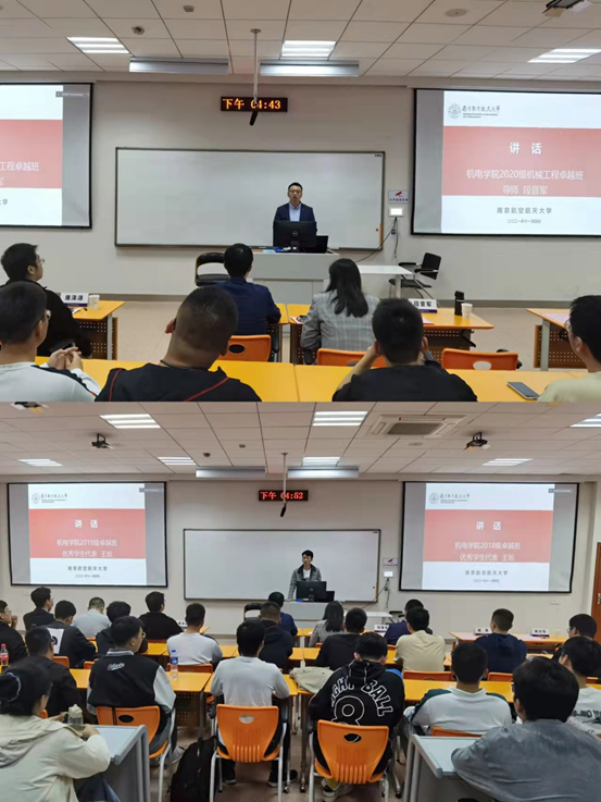 11月4日下午,AV片 2020级“卓越班”开班典礼在将军路校区5101举行。本次活动邀请了菲舍尔航空部件镇江有限公司工程中心副主任乔巧玲、仅一联合智造有限公司人事经理束玲、AV片 本科教学副院长于敏、AV片 院长助理朱海华、校团委挂职副书记2020级“卓越班”班主任段晋军、长空学院2020级辅导员康泽源、AV片 2020级辅导员董航、AV片 本科教学秘书熊萍萍、2018级“卓越班”优秀学生代表王旭以及2020级机械工程专业“卓越班”与飞行器制造工程专业“卓越班”的全体同学。典礼由2020级“卓越班”辅导员戚昊主持。