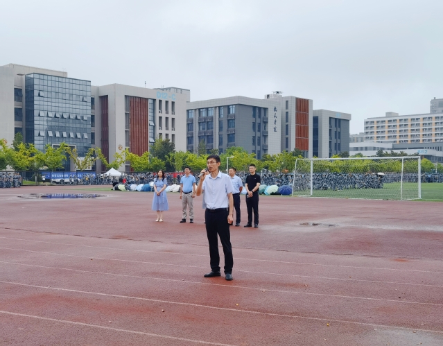 学院领导最后还来到将军路校区东区操场,慰问正在军训中的2021级本科生,刘虎在现场鼓励同学们要积极发扬不怕苦不怕累的精神,在军训赛场上展示五院学子的风采。