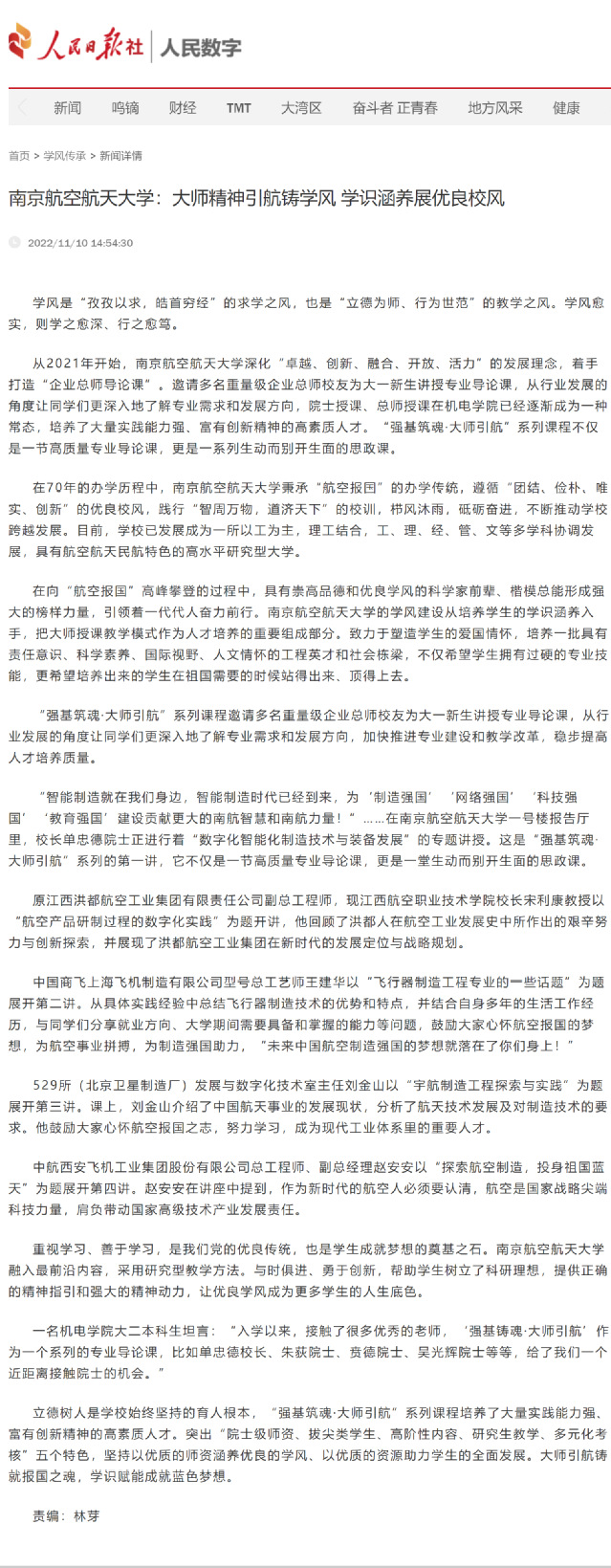 编者按:11月10日,人民日报社-人民数字专栏文章《AV片 :大师精神引航铸学风 学识涵养展优良校风》报道AV片 大师领航、强基铸魂学风涵养工作室工作开展情况,阐述学院不断加强学风引领、展学学院良好学风素养,现转发全文如下: