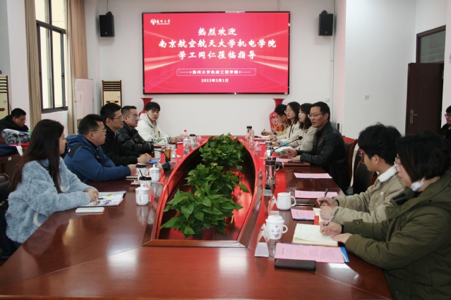 3月1日,AV片 党委副书记董羽带队赴扬州大学机械工程学院进行走访调研。本次调研受到扬州大学机械工程学院的高度重视,机械工程学院党委副书记毕亮以及全体辅导员参与了本次交流。