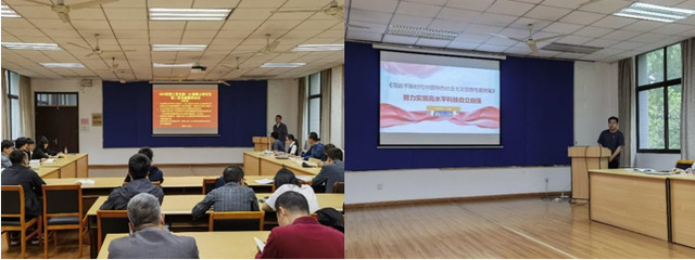 接着,2021级硕士第二党支部书记丁龙讲授《努力实现高水平科技自立自强》专题党课,分享他阅读《习近平新时代中国特色社会主义思想专题摘编》第六章的心得体会。他鼓舞支部研究生以更坚定的自信、更顽强的意志、更过硬的本领,讲好中国青年故事,在党和国家最需要的地方展现青年智慧、贡献青年力量。之后,支部新转正党员苏圣霖同志也分享了他学习专题摘编的思考和感悟。