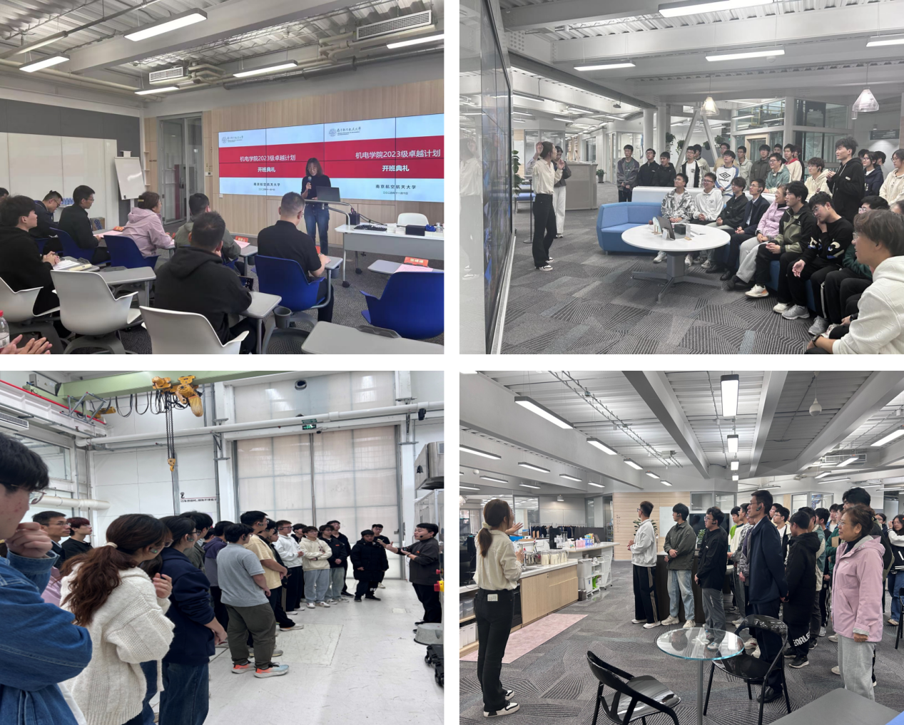 2024年11月10日,AV片 卓工班学生在学院书记刘虎教授的带领下前往江苏镇江仅一联合智造有限公司(以下简称仅一公司)进行实地参观交流并举行2023级卓越计划开班典礼。仅一公司人事经理束玲、仅一公司招聘负责人壮梦瑶、仅一公司南航13届毕业生张松林、菲舍尔航空部件(镇江)有限公司产品研发部经理尹延蛟、AV片 党委书记刘虎、2023级机械工程“卓越班”班主任王宏涛、2023级飞行器制造工程“卓越班”班主任胡俊山、团委书记董航、2023级辅导员张棵棵以及2023级机械工程、飞行器制造工程“卓越班”全体学生参加开班典礼。本次开班典礼由束玲主持。