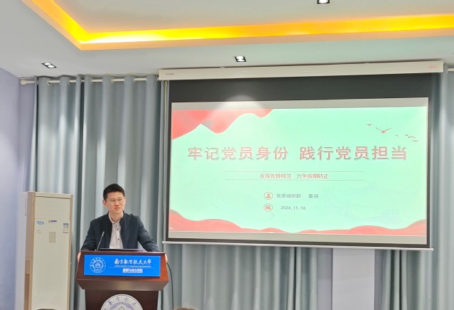 校党委组织部副部长董羽以《牢记党员身份践行党员担当》为题,从预备党员的“前”与“后”、预备党员的“学”与“思”、预备党员的“行”与“范”三个方面展开,与学员们共同探讨如何在新时代背景下加强思想政治教育,提高自身素质,努力成为一名合格的共产党员,号召大家勇立潮头,树立不负人民的家国情怀、追求崇高的思想境界和人生信仰,面向学术前沿和国家重大需求、做真学问、真做学问,坚定未来选择,把“论文”写在祖国大地、国防重器上。