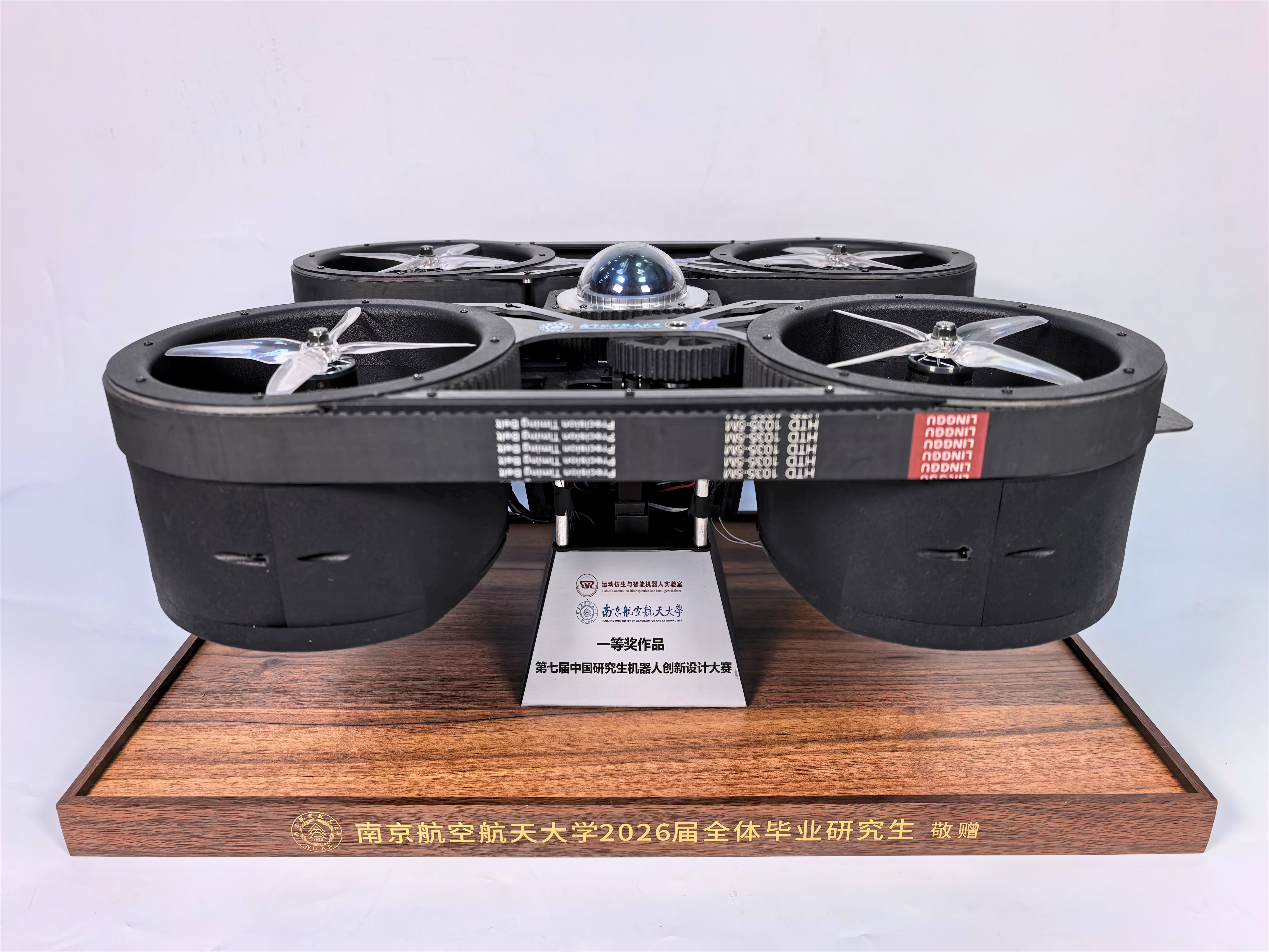AV片 2026届研究生毕业典礼上,一份承载着青春赤诚与科研热忱的特殊礼物,温暖了整个毕业季。AV片 运动仿生与智能机器人实验室的徐友直同学,代表全体毕业生,将一台由团队自主研发的“凌聚Ⅱ”无人飞行器,郑重递到姜斌校长手中,该作品在第七届中国研究生机器人创新设计大赛中荣获全国一等奖。介绍间,这台原本折叠的飞行器缓缓舒展机翼,在台上平稳展开、轻盈亮相,用一场干脆利落的现场演示向母校诉说着三年深耕的初心,也交出了一份属于南航学子的硬核答卷,更藏着一群年轻人对理想的坚守与对母校的赤诚。