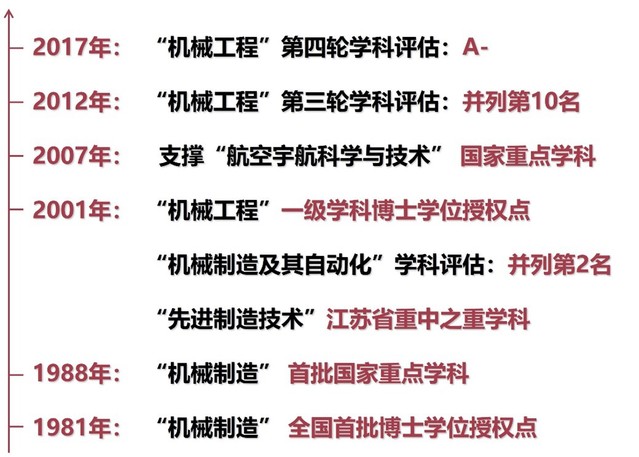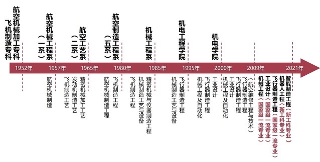机电学院的前身是1952年南航建校之初,为适应当时我国航空工业生产需要而设立的航空机械加工专科、飞机制造专科。1957年,设立航空机械工程系,云铎先生为首任系主任;1995年,变更为机电工程学院;2000年,更名为机电学院。机械制造学科1981年成为全国首批博士学位授权点,1988年入选首批国家重点学科。学科奠基人中,程宝蕖先生是著名飞机制造专家,首创的容差分配协调方法奠定了我国飞机装配的理论基础;张幼桢先生是著名机械加工专家,国内第一位国际生产工程科学院院士;余承业先生是著名特种加工专家,开创了我国电加工专业研究生教育。