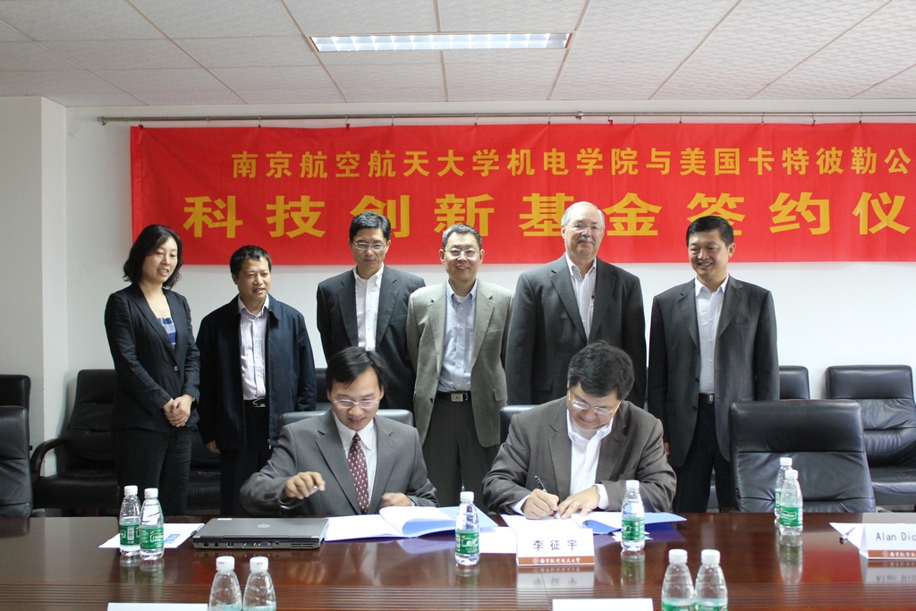 签约仪式上,吴庆宪副校长向卡特彼勒公司代表介绍了南航的发展概况以及南航学生在各级各类竞赛中取得的优异成绩,并特别强调了南航开放办学的精神,同时表达了与卡特彼勒公司开展更广泛合作的愿望:希望能借助校企合作的机会,来促进我校更多的创新型项目研究和科技成果转化,实现产学研全面战略合作。机电学院党委书记陈文亮教授介绍了机电学院的基本概况、师资队伍、科研基地、人才培养等情况,并重点向卡特彼勒公司代表介绍了机电学院科学研究的具体内容和科研成果。