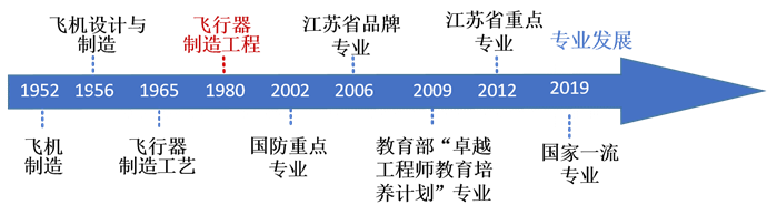 南京航空航天大学是1952年新中国首批建设的航空院校,飞机制造是首批六个专业之一,1980年更改为飞行器制造工程,为国家级首批一流本科专业建设点、国防重点专业、教育部“卓越工程师”教育培养计划专业、江苏省品牌专业、江苏省重点专业,所属一级学科航空宇航科学与技术2007年评为国家重点学科,具有博士学位授予权,现设有航空宇航科学与技术博士后流动站和教育部“长江学者”特聘教授工作岗位。2008年依托本专业开设了“十一五”国防紧缺专业“航空维修工程与技术”方向。2012年入选教育部“卓越工程师”教育培养计划。目前拥有飞行器制造工程、飞行器制造工程(航空维修工程与技术)两个本科专业(方向)。2019年入选首批国家级一流本科专业。