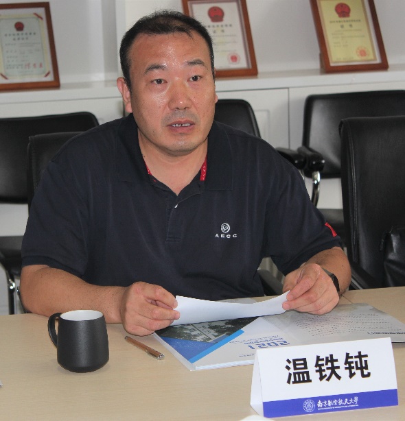 无锡凯美锡科技有限公司经理陈建良介绍了企业基本情况,他希望,与机电学院在铝合金薄壁零件加工变形控制、制造-装夹-检测一体化技术等方面加强合作。
