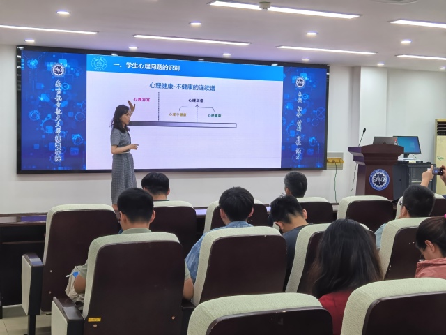 为提高研究生心理健康教育服务水平,加强研究生导师在研究生培养过程中的心理指导能力,构建协同联动心理健康教育格局,9月20日,机电学院于明故宫校区A15号楼522报告厅开展心理育人专题辅导讲座,邀请心理健康教育中心陈瑜进行主讲,学院党委副书记赵铮、研究生导师代表及全体辅导员共计50余人参加此次活动。