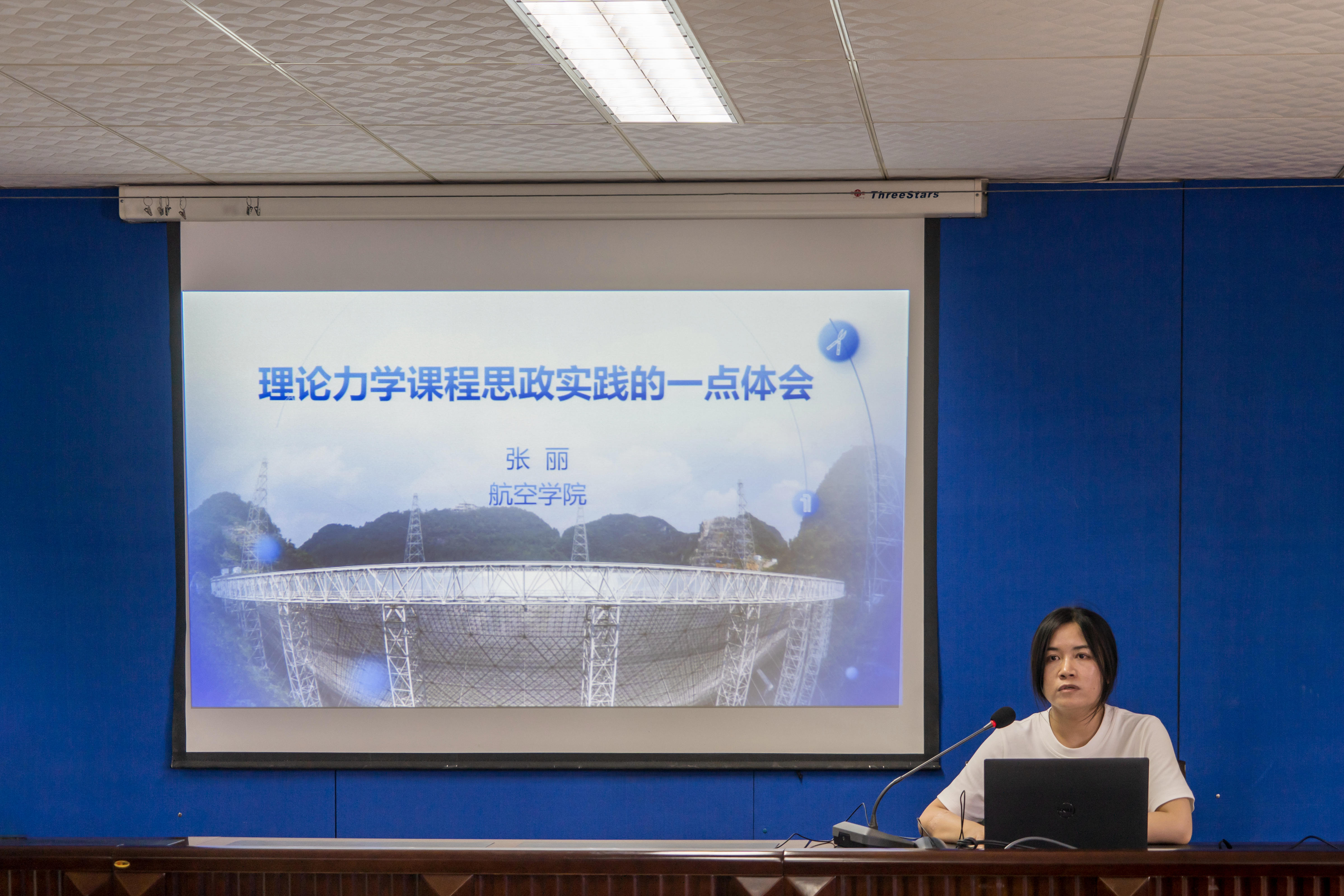 张丽做了题为《理论力学课程思政实践的一点体会》的报告,以理论力学课程为例,从政策指导文件解读到分析课程特征,再从结合重大工程、结合热点、结合力学史、结合身边事等方面出发,给出了关于课程思政建设的具体实施方法。