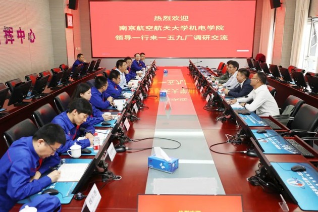 10月12日,机电学院党委书记刘虎、院长傅玉灿等一行赴航天三院159厂开展合作交流。159厂党委书记、董事长李鹤鹏,党委副书记、纪委书记、工会主席李凡,总工艺师刘英智,相关部门领导及南航校友代表亲切接待并开展座谈,机电学院航空宇航制造工程系党支部书记张臣、挂职干部教师郭智广副院长、赵正彩副主任等参加了本次活动。座谈会由李凡主持。
