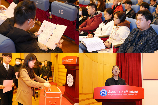 12月16日,中共南京航空航天大学机电学院学生总支部第四次党员代表大会在明故宫校区逸夫科学馆报告厅召开。学院党委书记刘虎、党委副书记赵铮、正科级组织员昂洋、辅导员以及学生党员代表等150余人参加会议,会议由学院学生工作办公室主任董航主持。