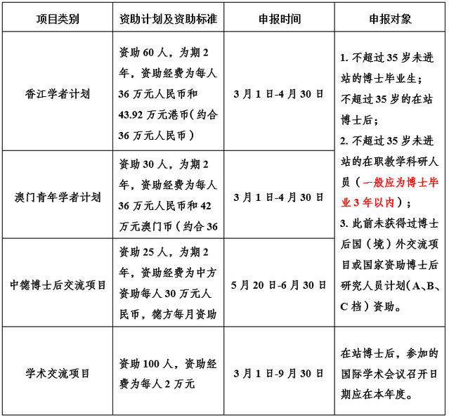 4. 香江学者计划、澳门青年学者计划和中德博士后交流项目获选人员在上述项目结束前,不得办理出站手续。