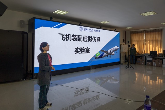 来自飞机装配虚拟仿真实验室的金霞老师和王珉老师通过电脑仿真手段模拟大型机械的运作与组装,向同学们深入展示了南航发明的专利柔性轨道技术。同学们亲身参与了一些仿真模拟实验,了解了仿真技术的应用,体验过程精彩而有趣,使同学们在互动中更加直观地感受科研的趣味性。