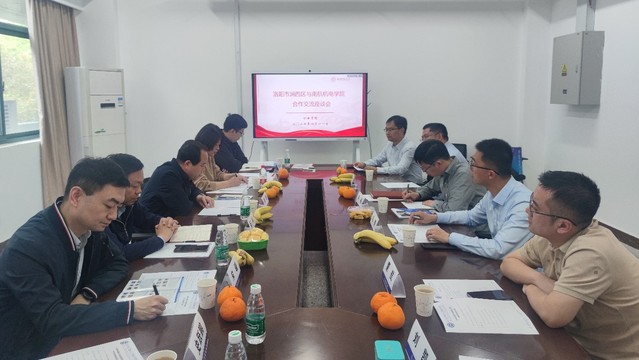 朱栋代表学院向谢峰一行表示热烈欢迎,并介绍了学校、学院的总体情况与产学研合作政策。他表示,洛阳是老工业城市和全国重要制造业基地,机电学院在机械装备、智能制造等领域优势显著,希望进一步深化双方在技术研发、成果转化等方面的合作,为涧西区的高质量发展与机电学院内涵式建设双向赋能谱写新篇章。