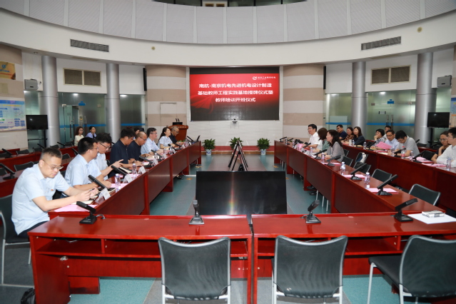 开班仪式由段喜松主持,他代表南京机电609所向南航教师表示欢迎,他指出,南京机电与南航双方不仅拥有共同的红色基因与蓝色梦想,更肩负相同的使命与责任,希望双方加强未来的合作,携手并进共创辉煌。杨兰芳代表学校向南京机电609所长期以来对南航科教产教融合的支持表达感谢,她表达了对深化合作的热切期望,并指出希望通过基地建设进一步增强学校和企业的对接,增强教师深入行业、服务社会的能力。随后,举行了“南航-南京机电航空先进机电设计制造基础教师工程实践基地”授牌仪式。