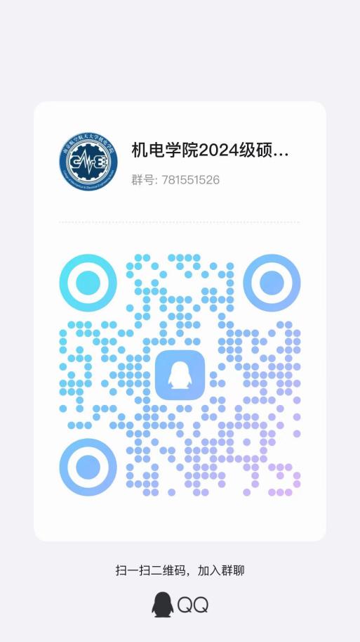 恭喜南京航空航天大学机电学院2024级硕士研究生的各位新生,即将步入新的学习生活。为方便后续相关信息的通知与管理,现在学院公布官方QQ群,请机电学院全体2024级硕士研究生新生尽快申请加群!入群申请时请提供真实姓名+拟录取专业名称,以便管理员查验通过。