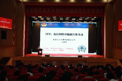 为帮助2025级研究生新生树立安全意识、掌握科研规范要求,9月4日下午,机电学院与航空学院在明故宫校区大学活动中心联合举办了2025级研究生新生安全教育大会暨新生见面会。机电学院副院长丁文锋、航空学院党委副书记韩楚、瑞金路派出所社区民警江雨甜、我校保密处权璐、资产与实验室管理处姚博宇、航空学院教务员董燕、两学院研究生辅导员、全体2025级硕博新生参会。大会由机电学院团委书记、博士生辅导员董航主持。