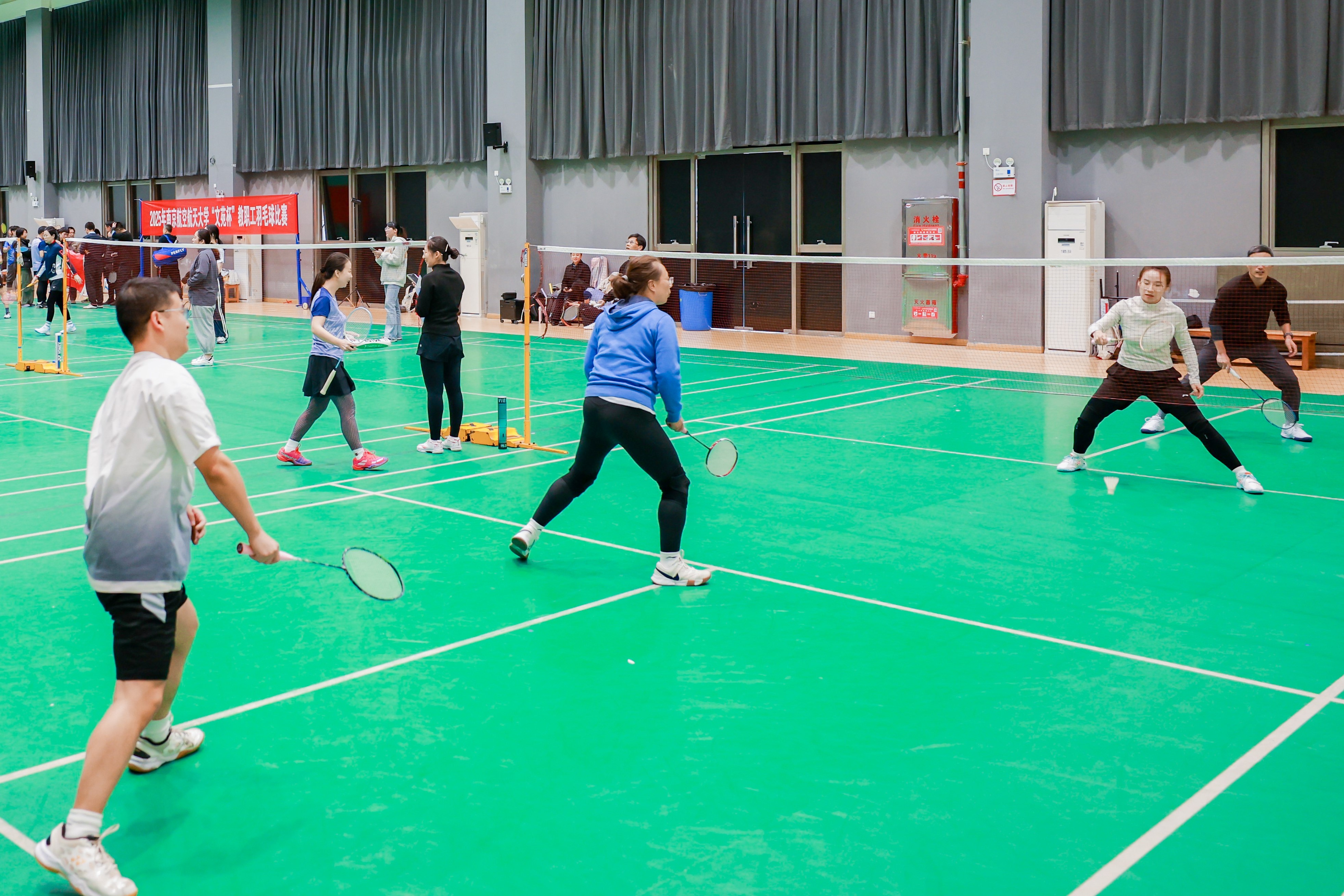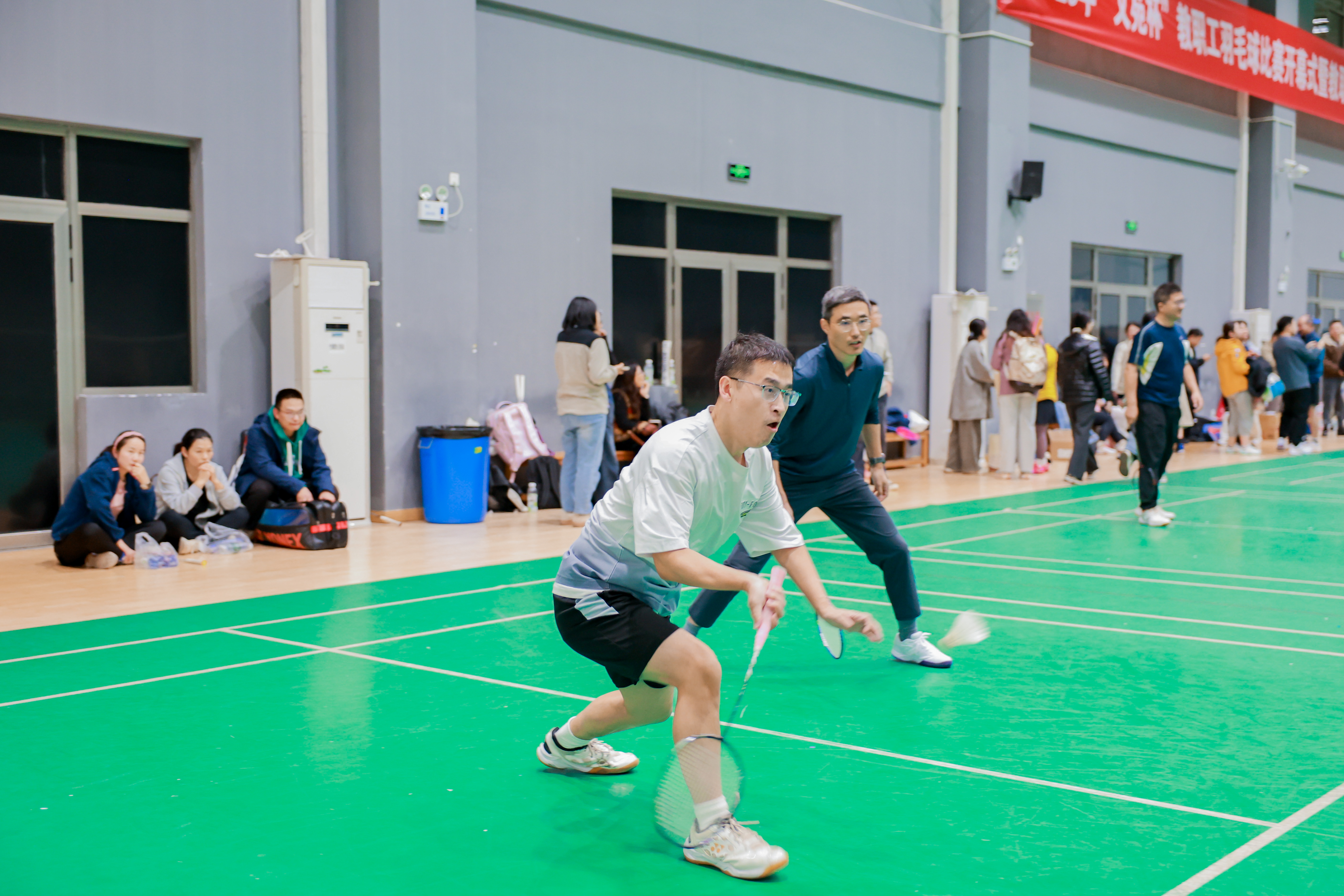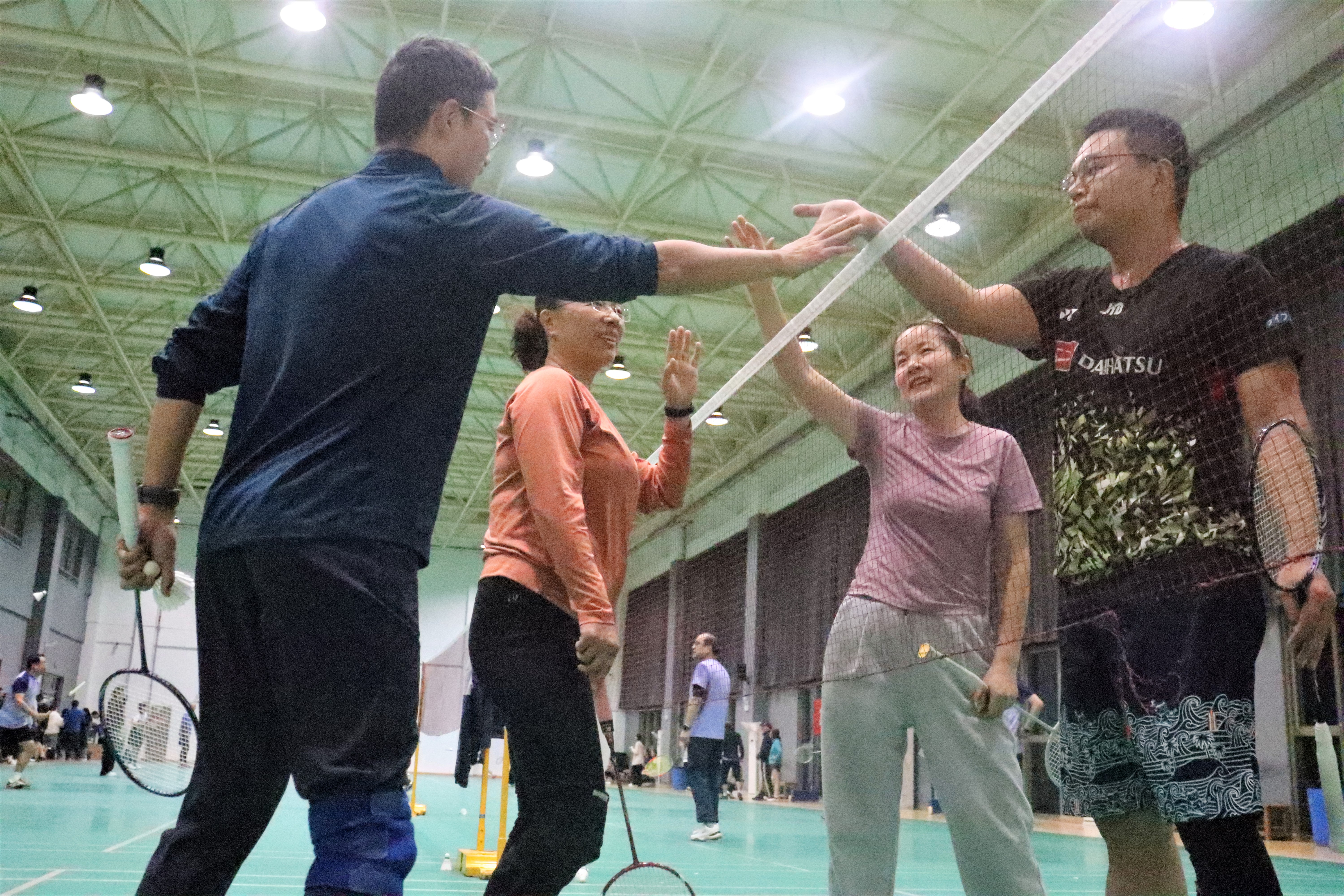 面对多支经验丰富、实力强劲的对手,学院代表队的老师们始终沉着冷静、从容应战。网前截击时的果断利落,后场扣杀时的力量迸发,底线吊球时的精准把控,每一个动作都凝聚着日复一日的积累。队友间眼神交汇的默契,跑动补位的及时,得分后击掌的欢呼,每一个瞬间都彰显着团队的凝聚力。无论是面对落后时的沉着追分,还是领先时的稳扎稳打,老师们始终以积极向上的心态迎接每一场挑战,用实际行动诠释着对羽毛球运动的热爱。