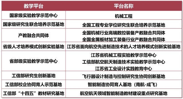 学院设有机械工程、飞行器制造工程、工业设计、机器人工程、智能制造工程5个本科专业。其中,机械工程专业为国家级首批一流本科专业建设点,通过了国际工程教育专业认证,为国家级特色专业、江苏省重点专业、江苏高校品牌专业建设工程一期A类项目,入选教育部“卓越工程师教育培养计划”,2022年入选江苏高校国际化人才培养品牌专业建设项目且立项资助;飞行器制造工程专业为国家级首批一流本科专业建设点、国防重点专业、江苏省品牌专业、江苏省重点专业,入选教育部“卓越工程师教育培养计划”;工业设计专业为国家级一流本科专业建设点、工业和信息化部重点专业、江苏省特色专业;机器人工程和智能制造工程专业是新工科专业,机器人工程专业2021年入选江苏省一流本科专业建设点;智能制造工程专业2021年开始招生。